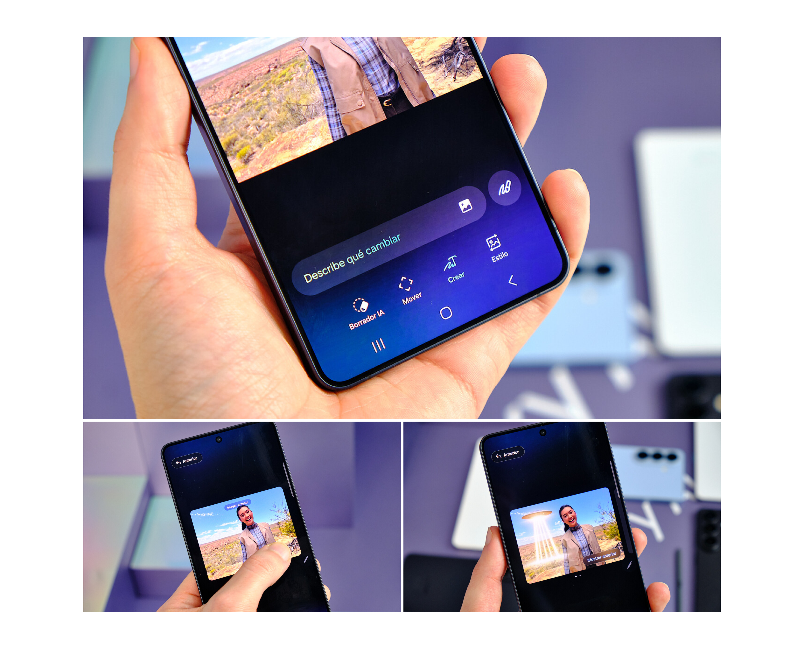 A esto se suman herramientas de edición inteligentes integradas en el sistema. Con funciones basadas en Galaxy AI, el usuario puede modificar fotografías con comandos de texto o voz, eliminar objetos o ajustar elementos dentro de la escena sin necesidad de aplicaciones externas.