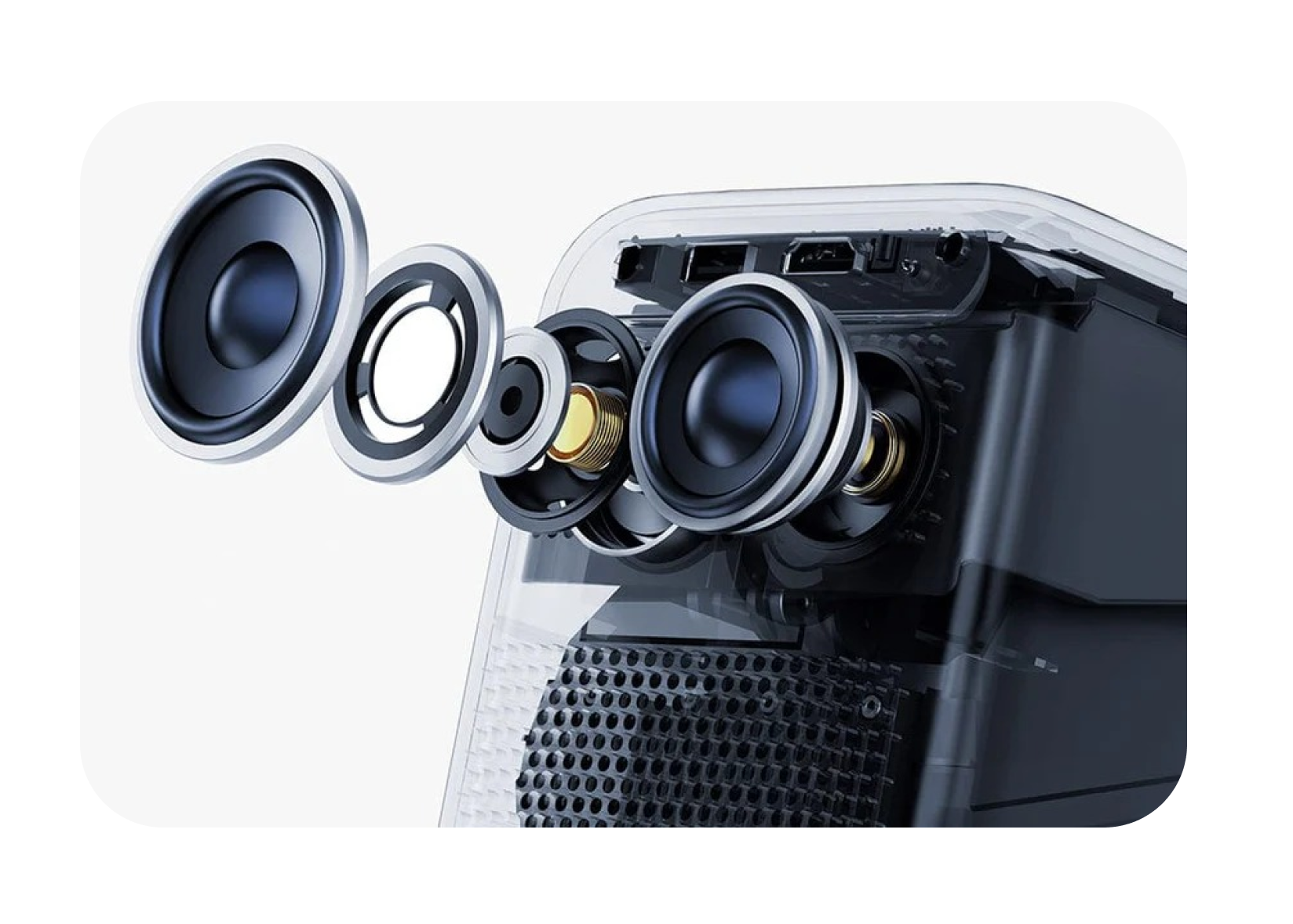 Cavidad magnética interna profesional, sintonización experta de nivel Hollywood. Las frecuencias graves alcanzan hasta los 60 Hz, distinguiendo claramente el timbre de cada instrumento y ofreciendo una experiencia de sonido envolvente.