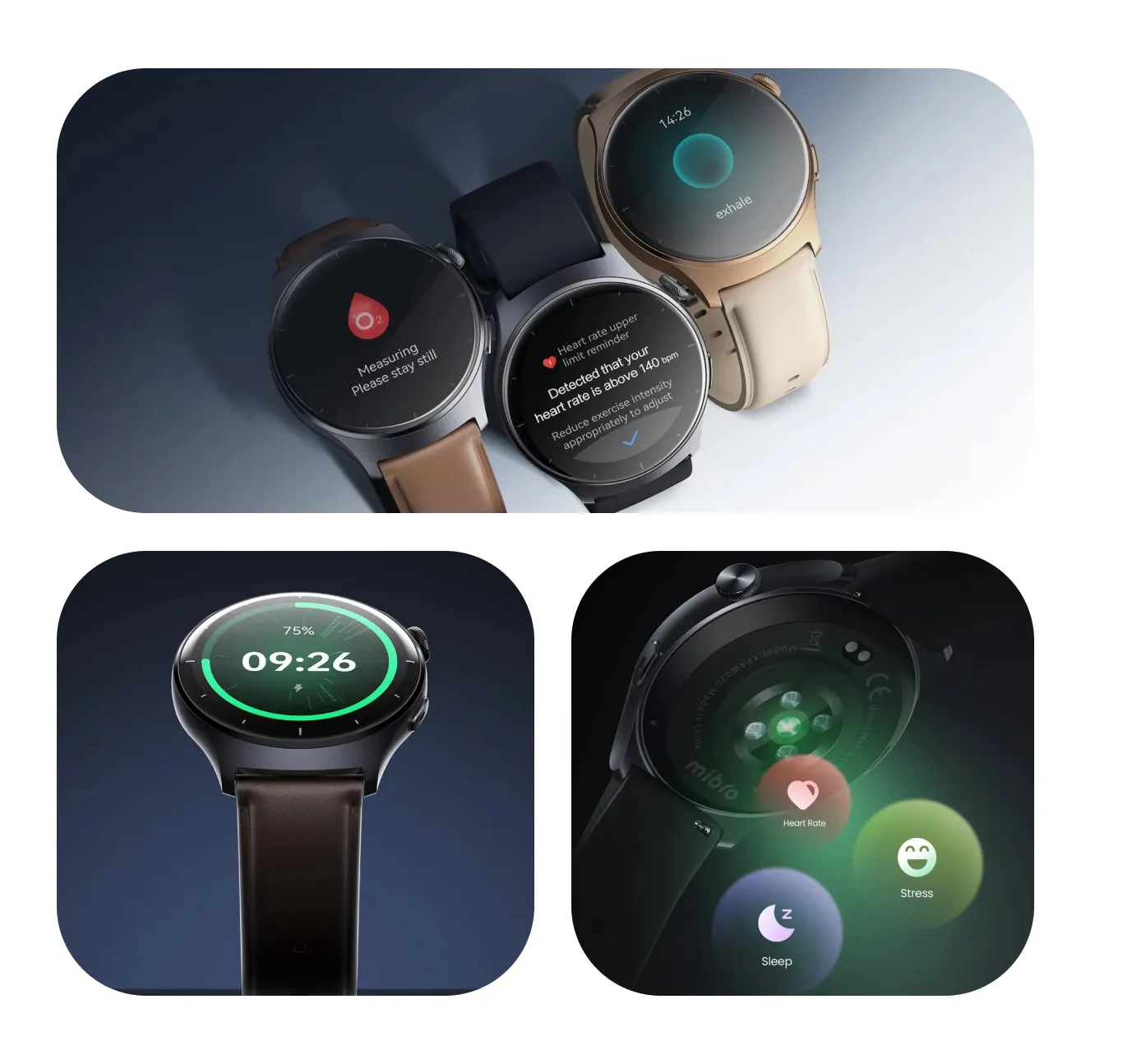 Este smartwatch ofrece más de 100 modos deportivos impulsados por algoritmos de movimiento profesionales, que cubren desde ejercicios comunes como correr y ciclismo hasta actividades acuáticas gracias a su certificación de resistencia al agua 2 ATM. Además, realiza monitoreo continuo de salud 24/7, con seguimiento de frecuencia cardíaca, niveles de oxígeno en sangre (SpO₂), estrés y sueño, proporcionando datos claros para evaluar tu bienestar general.