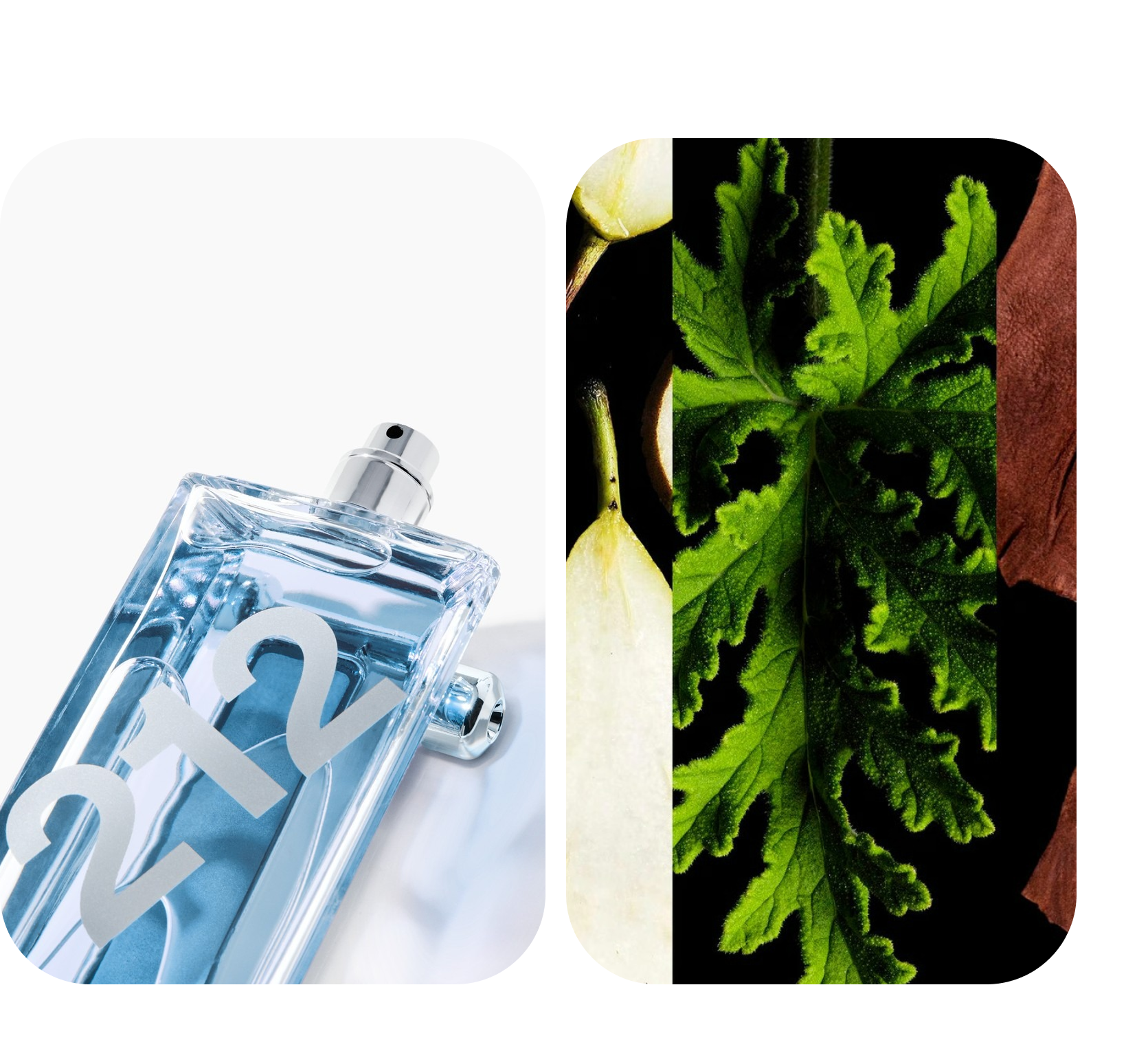 212 Heroes es una fragancia Fougère Frutal Amaderada que expresa juventud, actitud y modernidad. Su apertura combina elixir de pera y jengibre, realzados por la frescura innovadora de la Cannabis Lemon Haze. En el corazón, el aceite de geranio de Madagascar aporta un acorde aromático, mientras que el fondo de cuero y maderas garantiza profundidad y personalidad.