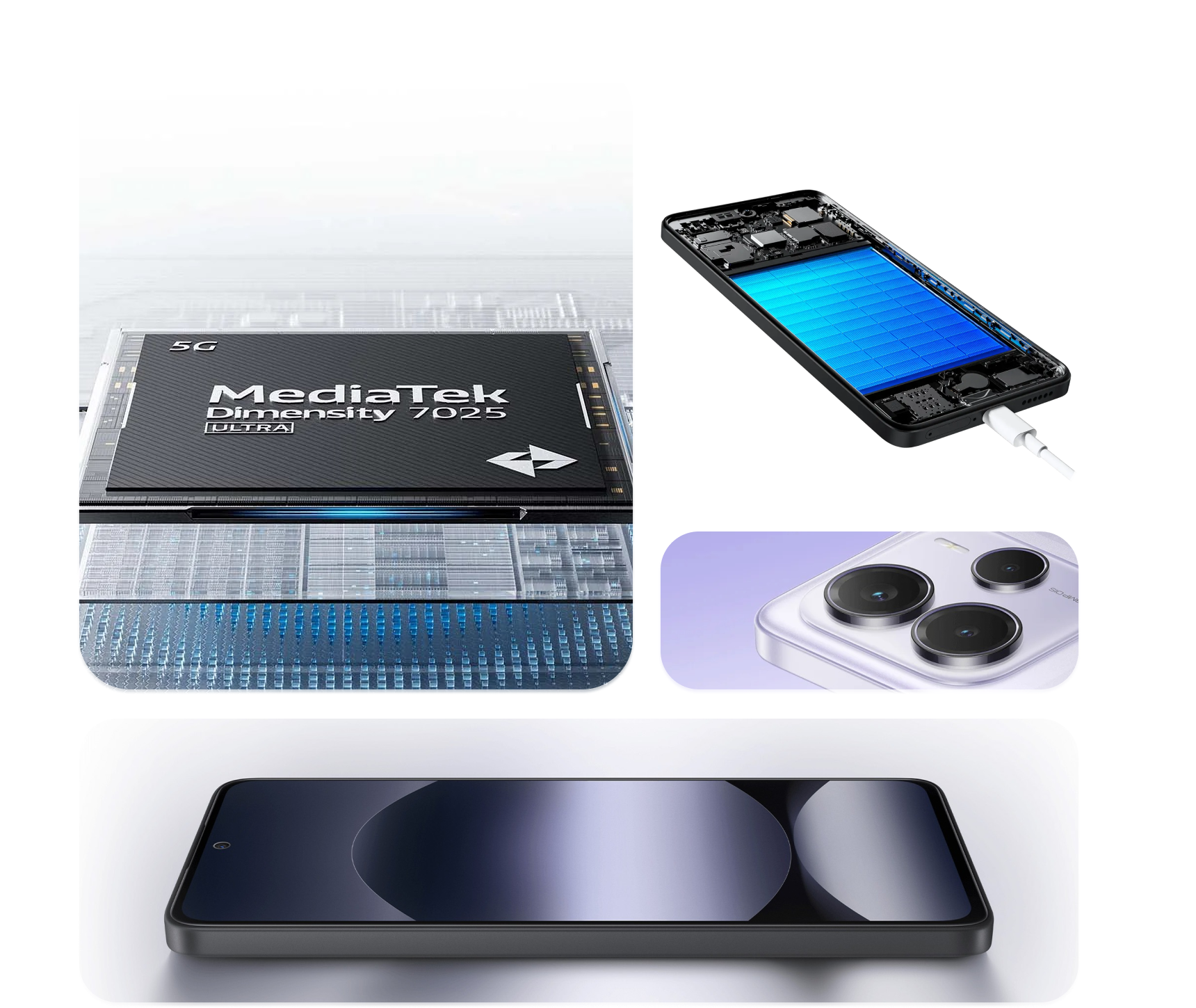 Impulsado por el MediaTek Dimensity 7025-Ultra, el smartphone cuenta con un avanzado procesador de ocho núcleos de 6 nm y conectividad 5G Dual SIM, ofreciendo un aumento significativo del rendimiento.