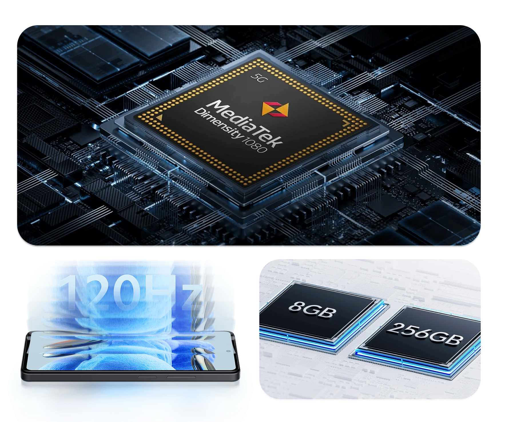 - El vanguardista chipset de proceso de 6 nm aumenta la velocidad general y reduce el consumo de energía para ofrecer un increíble rendimiento en la creación de vídeos e imágenes, juegos y conectividad 5G*.