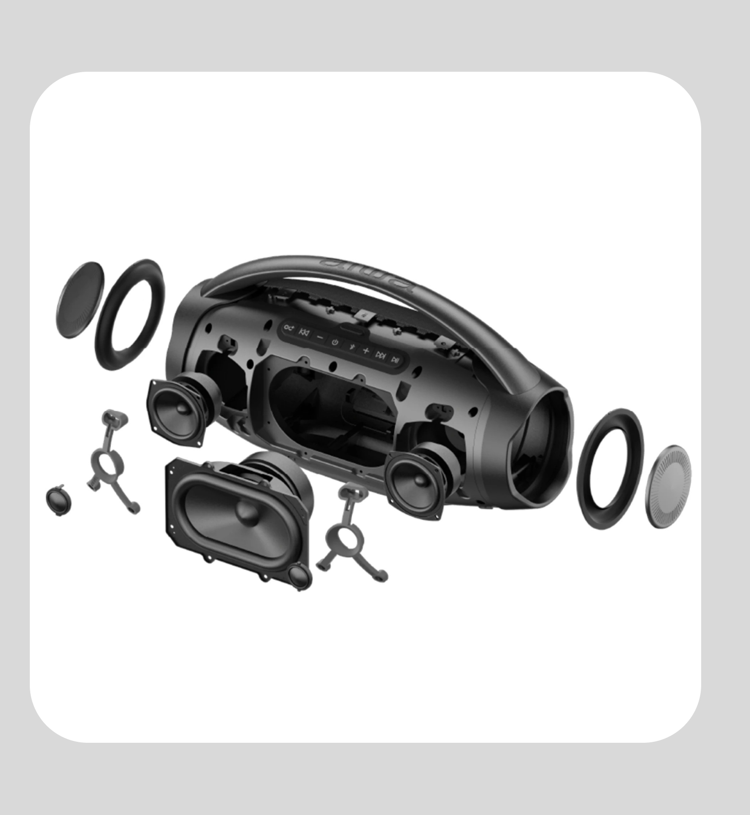 ofrecen graves profundos y agudos claros. Su batería recargable de 4500 mAh proporciona horas de autonomía e incluso puede actuar como power bank para cargar tu smartphone. También dispone de entradas AUX y USB, controles integrados y un diseño ergonómico con asa superior para transportarlo fácilmente.