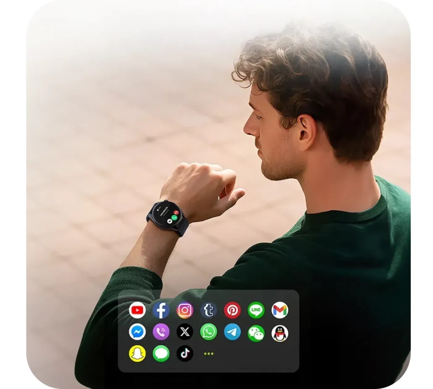 Monitorea hasta 120 modalidades deportivas - Permite atender o rechazar llamadas telefónicas - Recibe notificaciones inteligentes de mensajes, e-mails y de otras aplicaciones - Controla la reproducción de música del dispositivo móvil conectado al reloj - Soporta comandos de voz