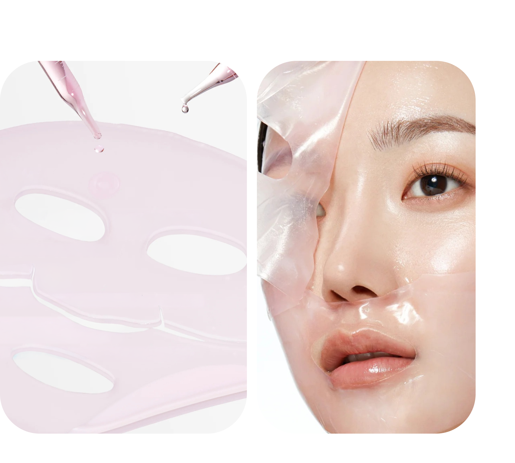 A medida que tu piel absorbe los ingredientes activos, la mascarilla cambia de color de rosa a transparente después de 3–4 horas.