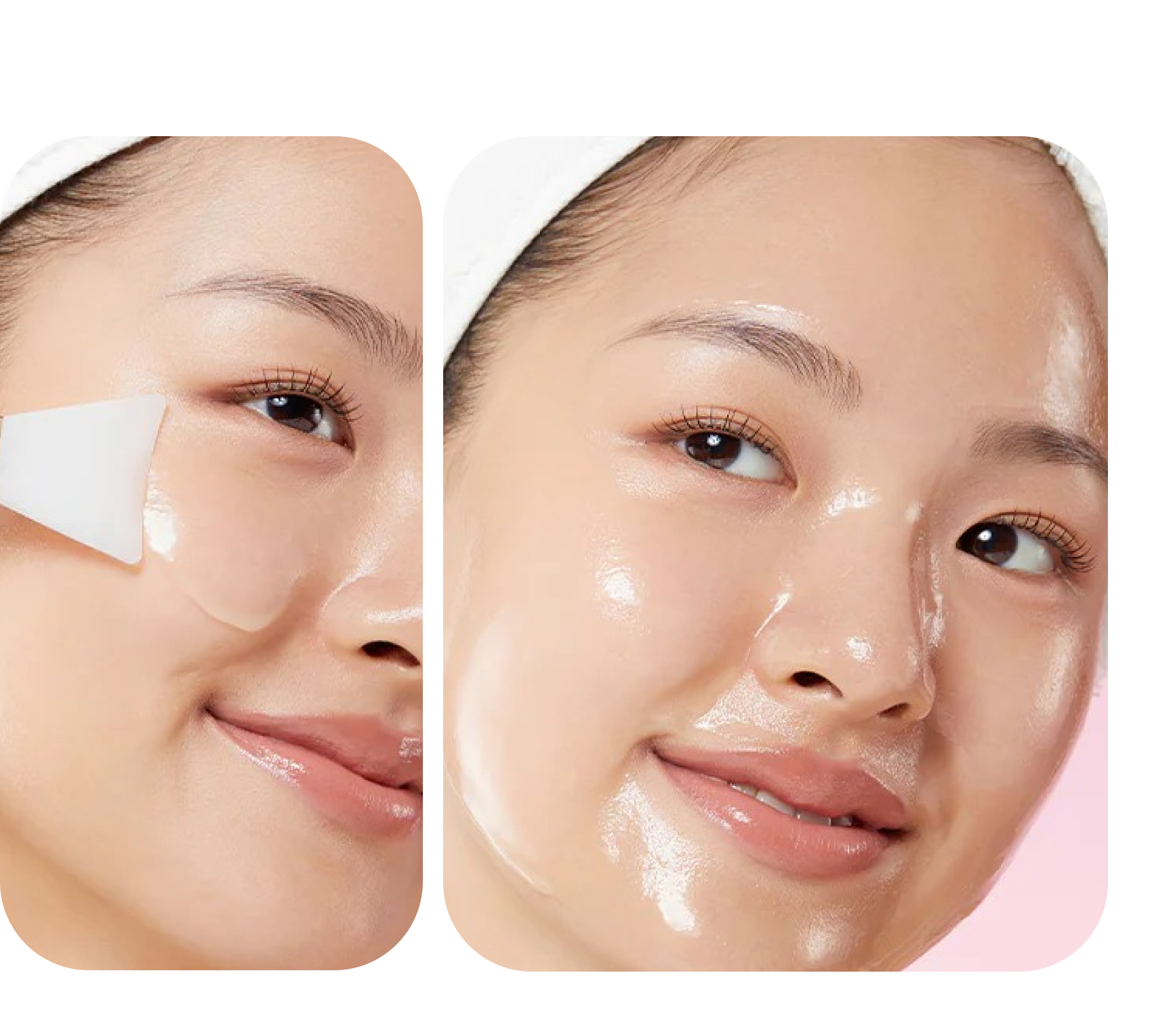 A la mañana siguiente, retira suavemente la mascarilla despegándola desde los bordes o enjuágala con agua tibia para revelar una piel renovada.