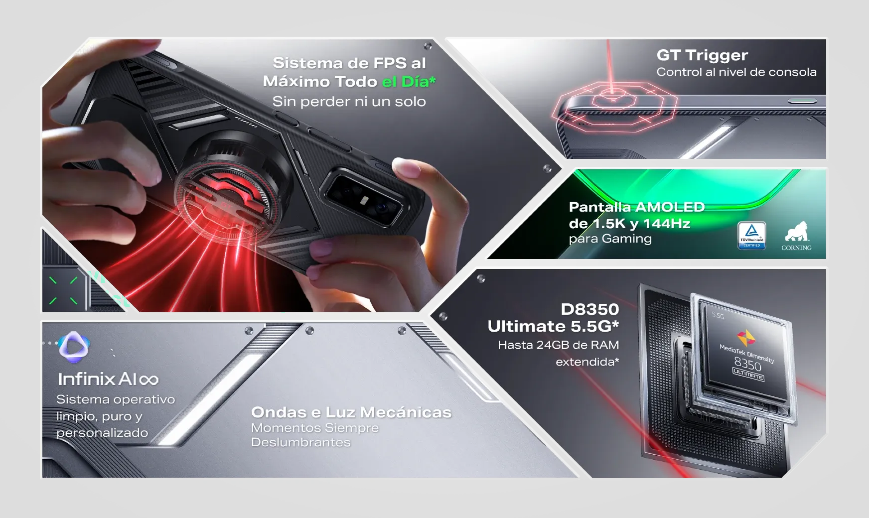 Celular Infinix GT 30 Pro X6873 NFC Dual SIM de 256GB 12GB RAM de 6.78" 108+8MP 13MP + Kit GT Gaming (1 Año de Garantía)