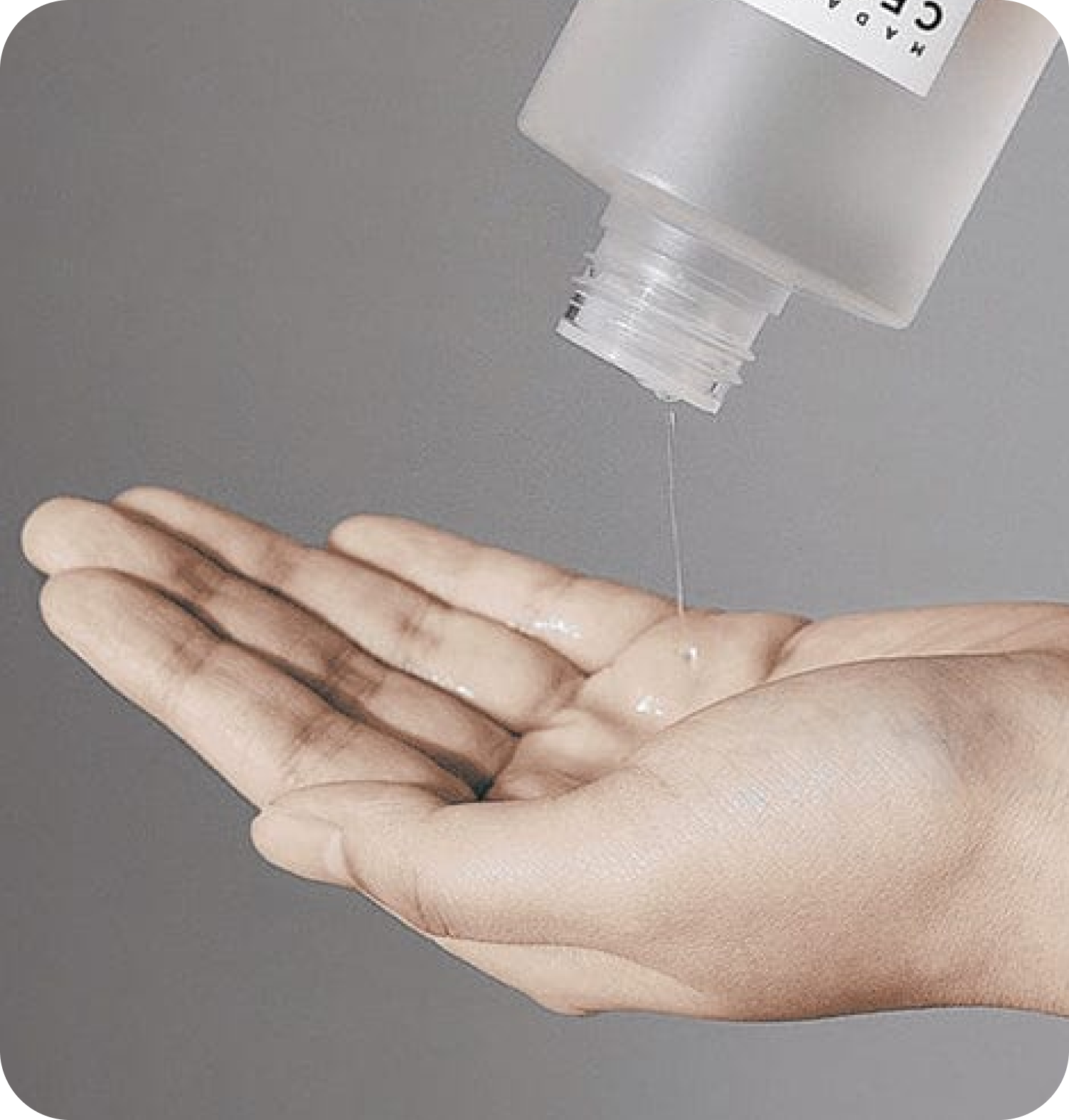 Aplica una cantidad adecuada en un disco de algodón o directamente en la palma de la mano y da suaves toques sobre la piel.