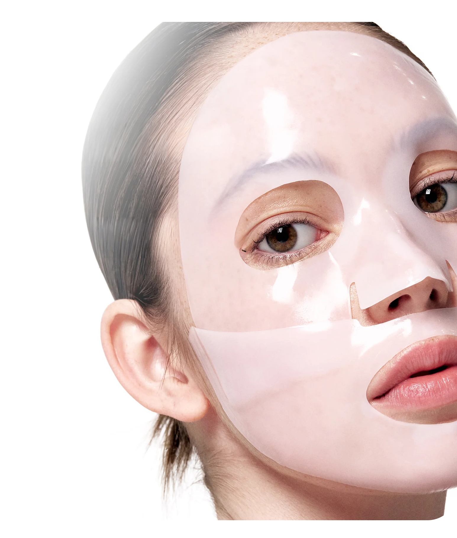 A medida que la mascarilla se adhiere y se absorbe, se transforma de una lámina opaca a una capa translúcida, garantizando máxima eficacia.