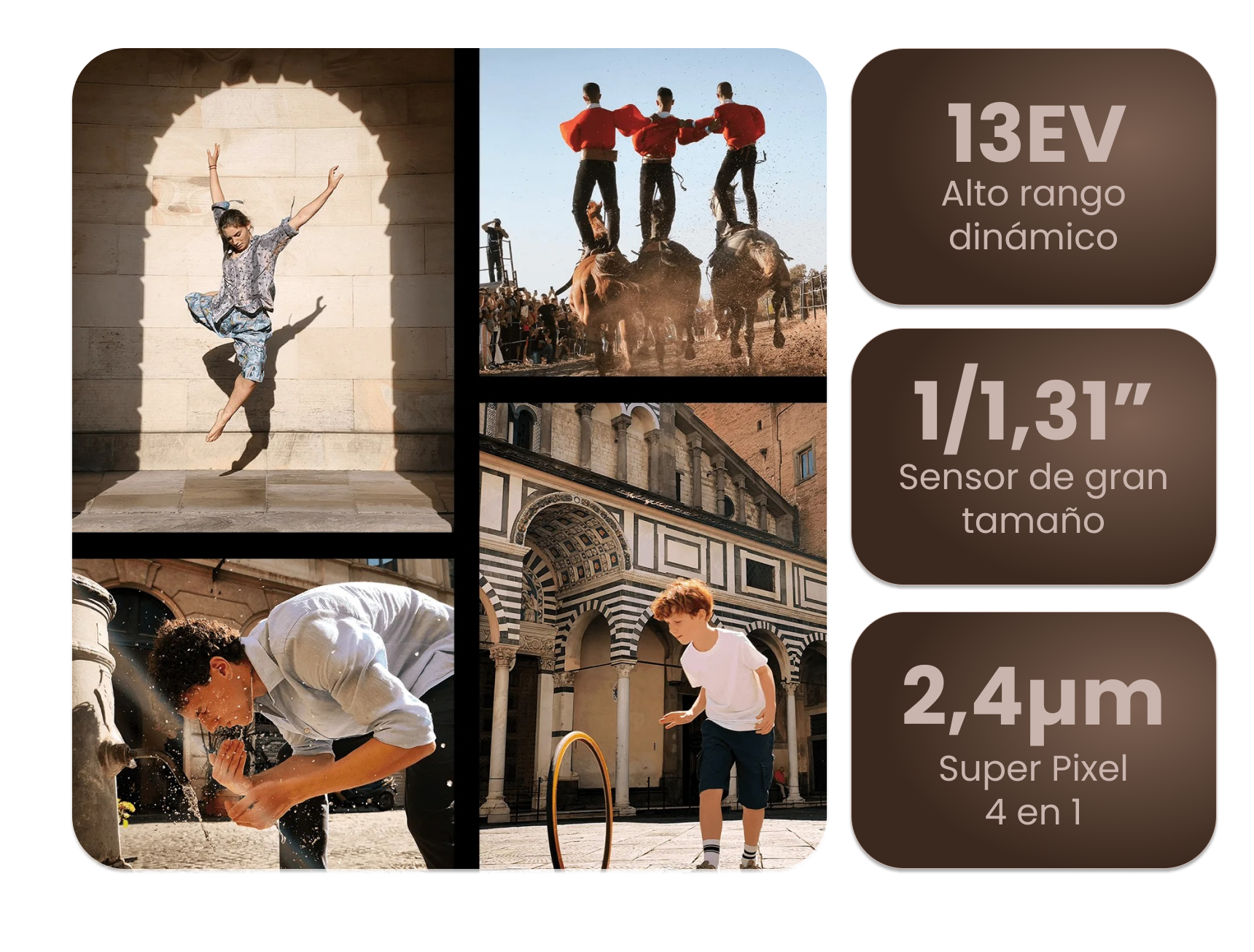 Con un sensor clásico de gama alta y un rango dinámico de 13,5EV, comparable al de las cámaras profesionales, captura con precisión momentos de luz y sombra realmente espetaculares.