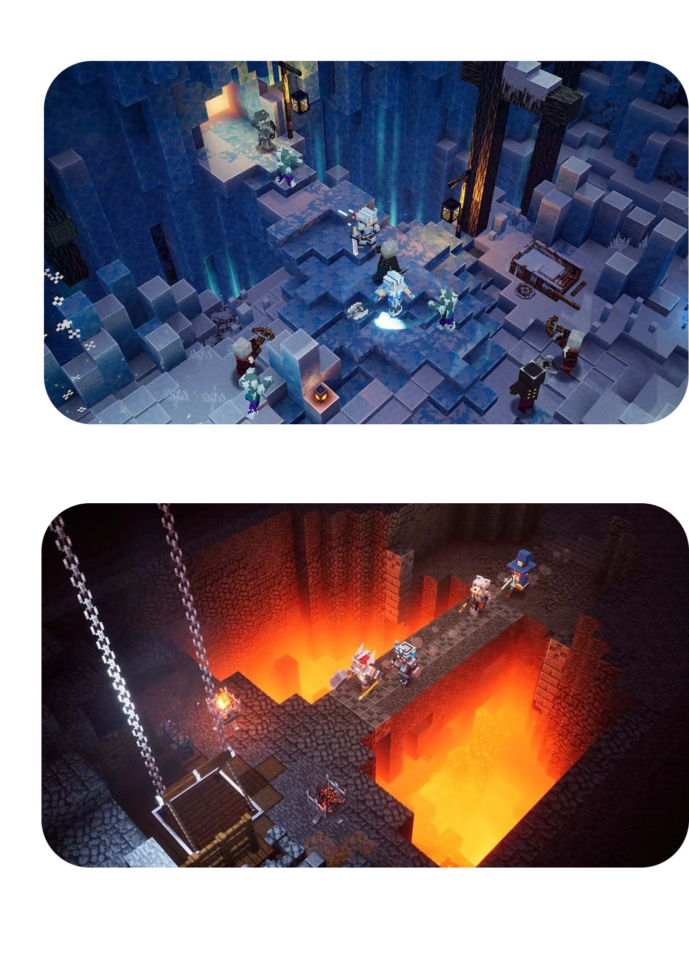 Una de las principales ventajas de la Ultimate Edition es que reúne todo lo que se ha lanzado para Minecraft Dungeons en una sola experiencia. Además del juego base, esta versión incluye seis DLC oficiales: Jungle Awakens, Creeping Winter, Howling Peaks, Flames of the Nether, Hidden Depths y Echoing Void.