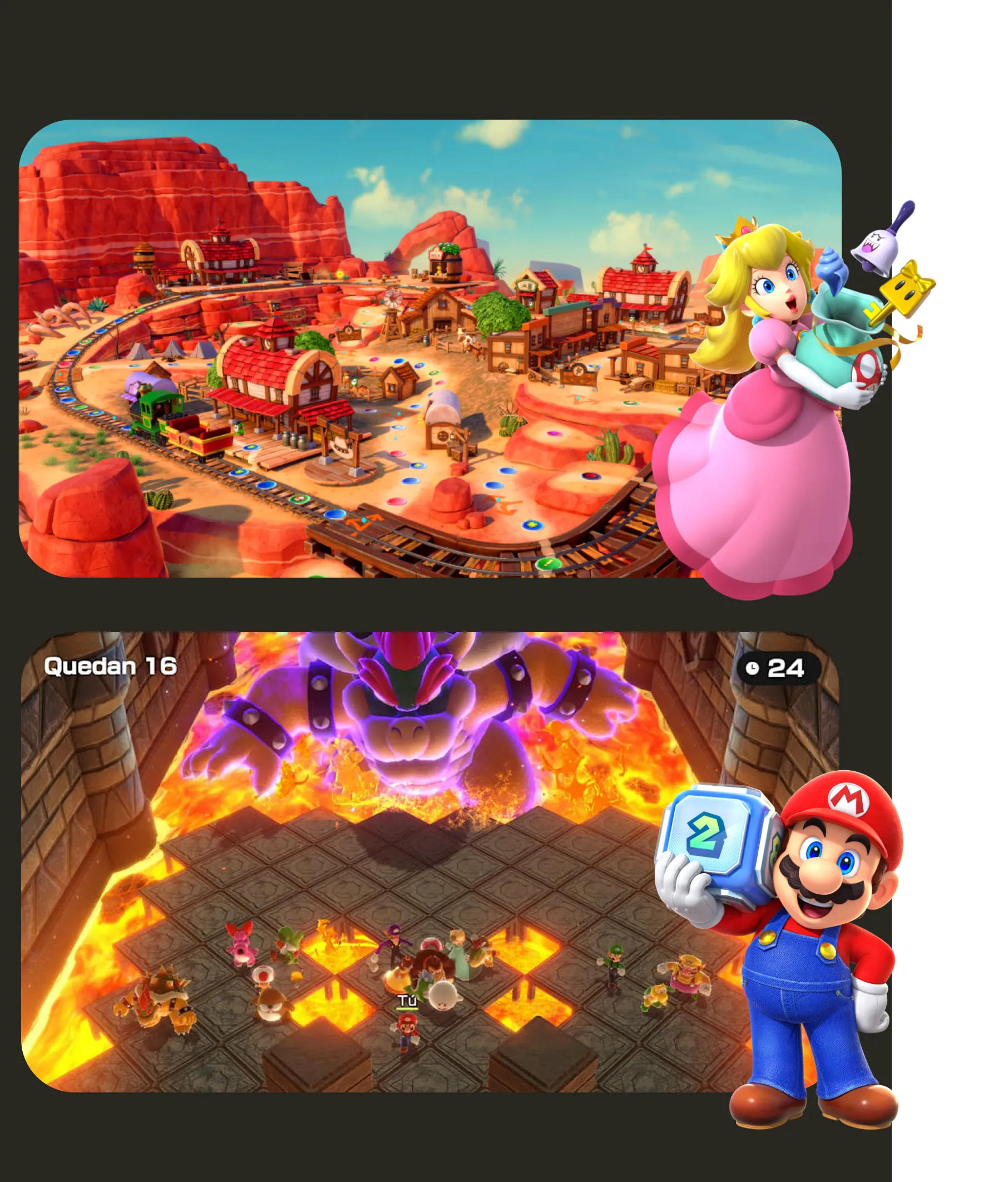 Super Mario Party Jamboree contiene más de 110 minijuegos, la mayor cantidad en la historia de la saga, y siete tableros distintos que incluyen escenarios nuevos y clásicos como Goomba Lagoon, Rainbow Galleria o Mario’s Rainbow Castle. Los minijuegos abarcan desde carreras frenéticas hasta actividades con control de movimiento y desafíos de precisión, lo que aporta variedad y emoción a cada partida.