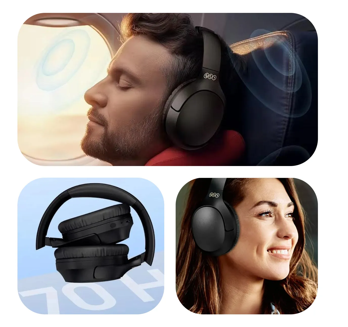 Su diseño over-ear con diadema ajustable y almohadillas suaves garantiza comodidad incluso durante usos prolongados. El formato plegable y los controles integrados hacen que el QCY H2 Pro sea práctico para el día a día.