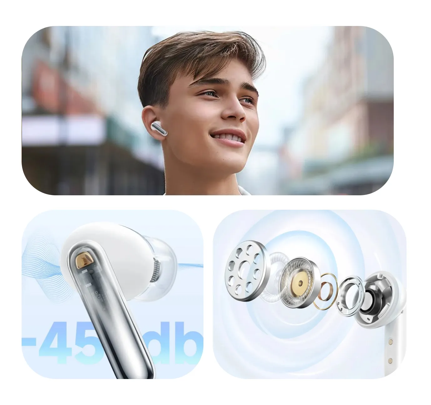 Los QCY MeloBuds N50 incorporan cancelación activa de ruido híbrida de hasta 45 dB, reduciendo los sonidos no deseados del entorno para una experiencia sonora más limpia y envolvente en música, videos y podcasts. Con drivers dinámicos de 12 mm, ofrecen un audio equilibrado y potente, ideal para el uso diario en distintas situaciones.