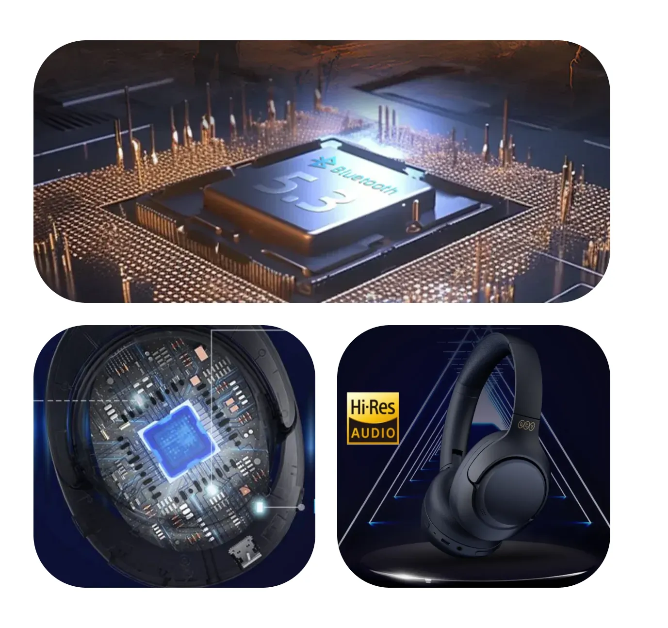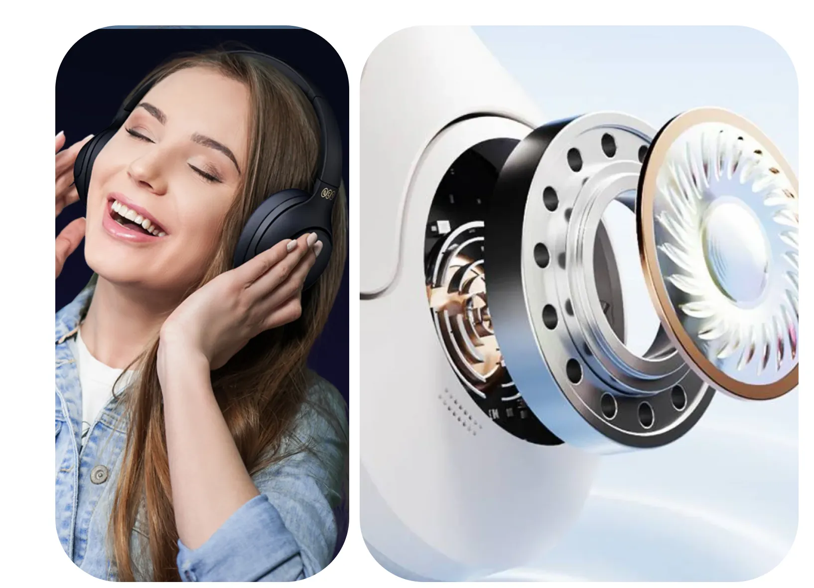El QCY H3 ANC ofrece un sonido rico y detallado gracias a sus drivers dinámicos de 40 mm y a la certificación Hi-Res Audio, garantizando graves profundos y agudos equilibrados para música, videos y juegos. Su diseño circumaural favorece el aislamiento acústico y una mayor inmersión sonora durante el uso.