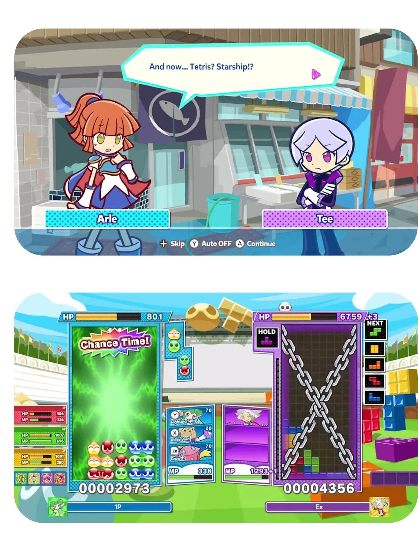 En el corazón de Puyo Puyo Tetris 2S se encuentra la fusión de ambos estilos de juego: por un lado, el clásico sistema de apilar y combinar bloques de Tetris para eliminar líneas; por otro, la acción estratégica de Puyo Puyo, donde grupos de piezas de colores se conectan para generar grandes cadenas de combos. Esta combinación crea desafíos constantes y variados, que requieren tanto reflejos rápidos como estrategias a largo plazo.